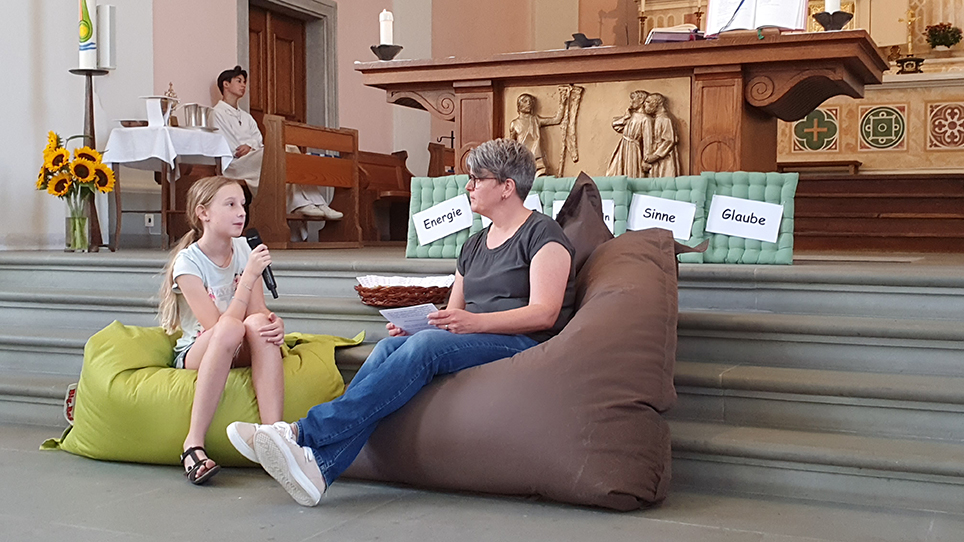 Die Chilbi - eine Auszeit, welche eher laut, lebendig und gesellig ist. Aber machmal braucht der Mensch auch ganz stille ‚Ruhe-Inseln‘ im Alltag um etwas abzuschalten und eben zur ‚Ruhe‘ zu kommen. Mit diesen Gedanken machten sich die Gottesdienstbesucher auf die Suche nach möglichen neuen Ritualen um den Alltag zu entschleunigen. Die Kinder durften gleich noch während der Messe Pause machen und dabei ihrer Kreativität freien Lauf lassen. Unglaublich, wie ruhig die Kinder das gemacht haben!