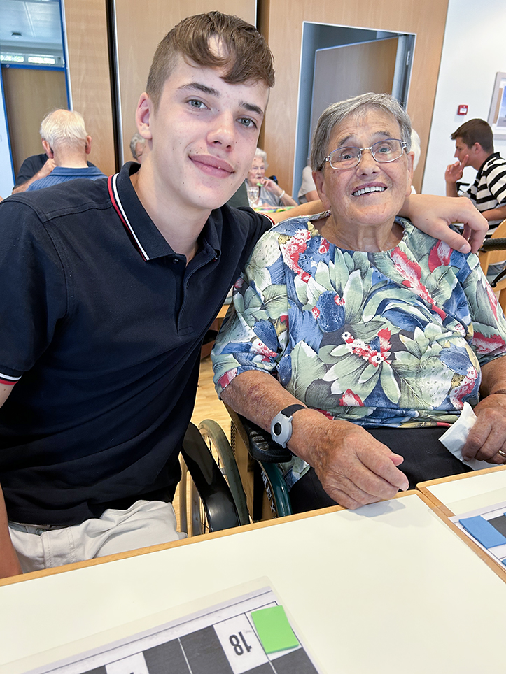 Am Samstag, 9. September war es dann soweit. Mit einem gewissen «Chribbeln» in der Bauchgegend, begaben sich die Jugendlichen in den Lift und verteilten sich auf den Stöcken, um die Bewohner abzuholen. Welche Freude kommt da auf, wenn der Enkel sogar seine Grossmutter abholen darf. Nach dem alle einen optimalen Platz erhalten haben kann das Spiel beginnen. Unterstützt von den Jugendlichen spielte es sich mit Freude, und eifrig wurde Lotto gerufen und kleine Preise ausgesucht. Mit einer zufriedenen Müdigkeit wurden die Lotto-Spielenden wieder auf ihre Zimmer gebracht und beim anschliessend offerierten Zvieri lustige und schöne Eindrücke vom Erlebten ausgetauscht.