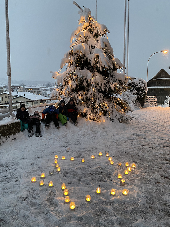 Die Schüler:innen machten im Gottesdienst mit, verkauften die Bethlehem-Schoggiherzen und verwöhnten die vielen Besucher mit Punsch und Kuchen. Ein wunderschöner Abend, den alle beim Anblick der vielen leuchtenden Kerzen in der Schneelandschaft noch mehr genossen. Zum Abschluss mussten die Kerzen dann wieder gelöscht und verstaut werden. Ein herzliches Dankeschön den Schüler:innen und allen erwachsenen Helfer:innen, die an dieser Aktion dabei waren und mithalfen.