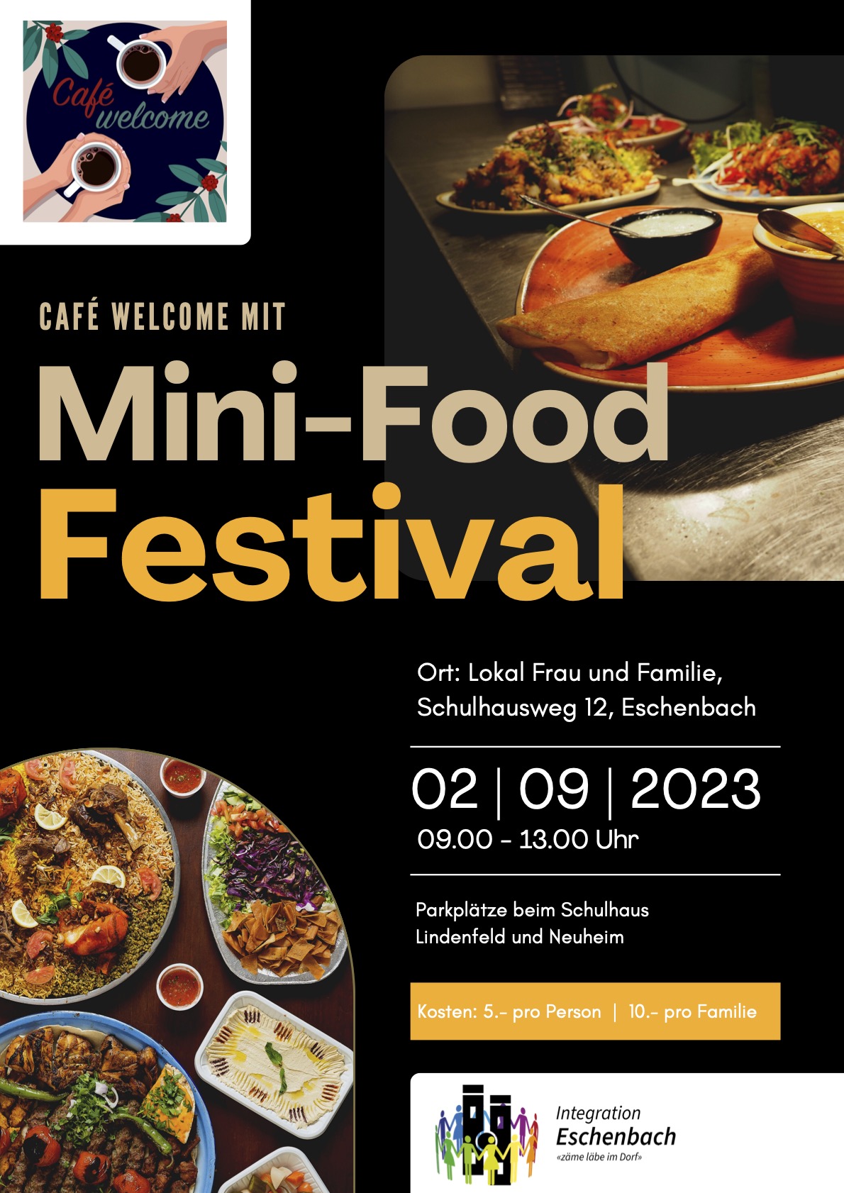 Das Mini-Food-Festival findet von 9 bis 13 Uhr im Lokal von Frau und Familie am Schulhausweg 12 statt. Zubereitet werden die Fingerfood-Köstlichkeiten von Menschen aus aller Welt, die in Eschenbach ein neues zu Hause gefunden haben. Auch die Schweizer Küche wird präsent sein. Wir freuen uns, wenn Sie sich mit uns auf eine kulinarische Weltreise begeben, dies gegen einen kleinen Unkostenbeitrag.