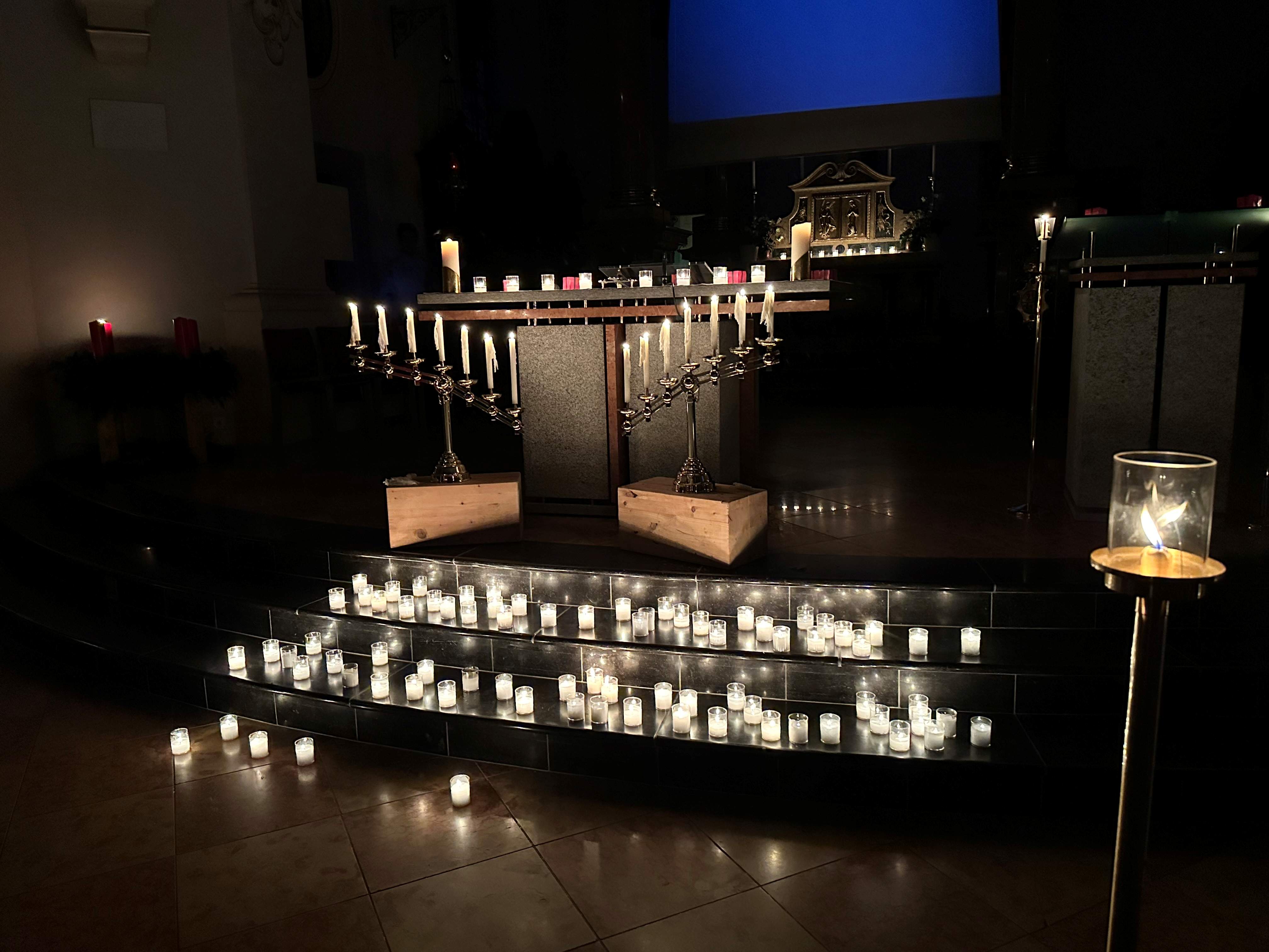 Am Mittwoch, 3. Dezember, 7.00 Uhr haben wir in der Pfarrkirche Eschenbach den ersten von drei Rorate-Gottesdiensten im Pastoralraum gefeiert. Inhaltlich ging es um das Schenken und Beschenkt werden anhand der Geschichte «Das rote Paket» und der Bibelstelle der Speisung der 4000. In einem Lichtritual haben die Teilnehmenden danach gute Gedanken in ihr Licht gelegt und es dann symbolisch vor Gott gebracht, gleichermassen als Bitte und Geschenk.