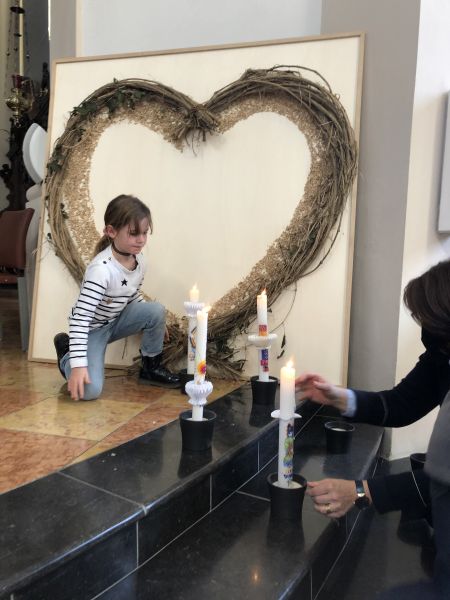 * Wie wir vorne in der Kirche im Halbkreis mit all den schönen Kerzen gestanden sind.