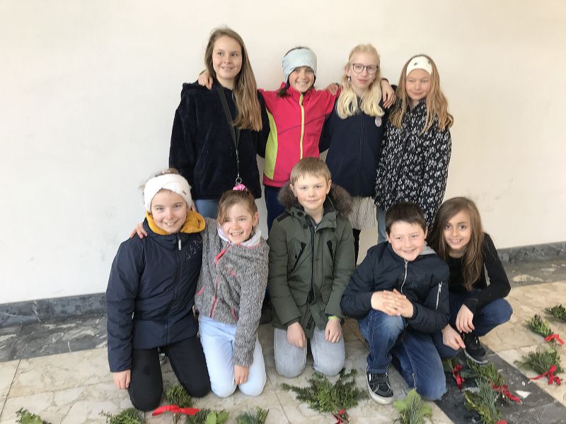 Die Kinder der 3./4. Klasse von Herrn Patrick Schmied sind wieder im Wald anzutreffen, um die richtigen Zweige zu sammeln. Die Kinder lernen, es braucht Buchs, Weisstannte, Thuja, Föhre, Hasel und Stechpalme für ein traditionelles Palmbüscheli. Mit guter Organisation, wie erzählt wurde, klappte das Zusammenbinden tiptop. So entstanden fürs Dösselen und die Kirchgänger am Sonntag schöne, mit Liebe gebundene Palmbüscheli. Die Besucher belohnten die Arbeit der Kinder mit grosszügigen Spenden für die Klassenkasse. Danke für euren Einsatz für diese schöne Tradition.