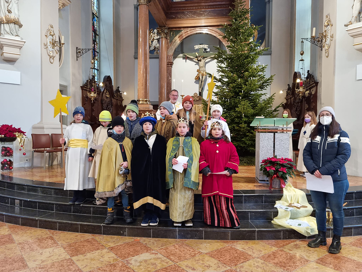 Trotz schlechtem Wetter waren dieses Jahr 10 Buben und Mädchen zusammen als Sternsinger unterwegs und brachten mehreren Haushalten den Segen fürs 2022.