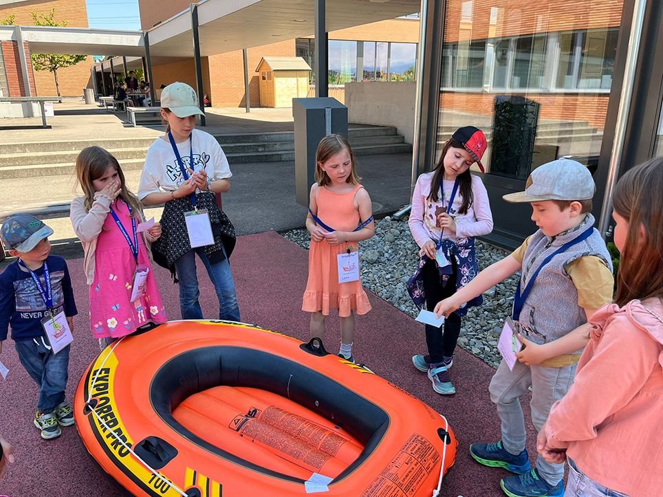 Nach der Geschichte wurde es kreativ! Die Kinder durften ihre eigene kleine Arche basteln. Es entstanden wunderschöne Mini-Schiffe. Jedes Kind konnte selber Tierbilder ausmalen und ausschneiden und auf die Arche kleben. Auch kam Sandra Leisibach mit ihren drei Hunden vorbei und zeigte den Kindern, wie sie mit den Hunden umzugehen haben. Danke Sandra!