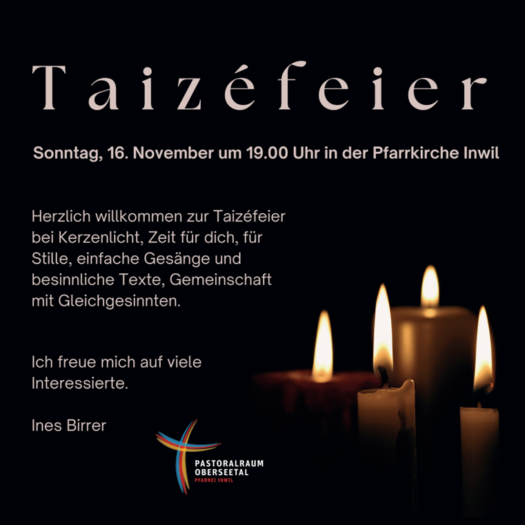 Herzlich willkommen zur Taizéfeier bei Kerzenlicht, zeit für dich, für Stille, einfache Gesänge und besinnliche Texte, Gemeinschaft mit Gleichgesinnten.